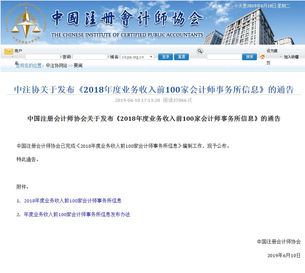 轉(zhuǎn):中注協(xié)公布2018年會計師事務(wù)所綜合評價前百家信息鴻英所排名第77名!發(fā)布日期:(2019-10-9) 點擊次數(shù):4597 |